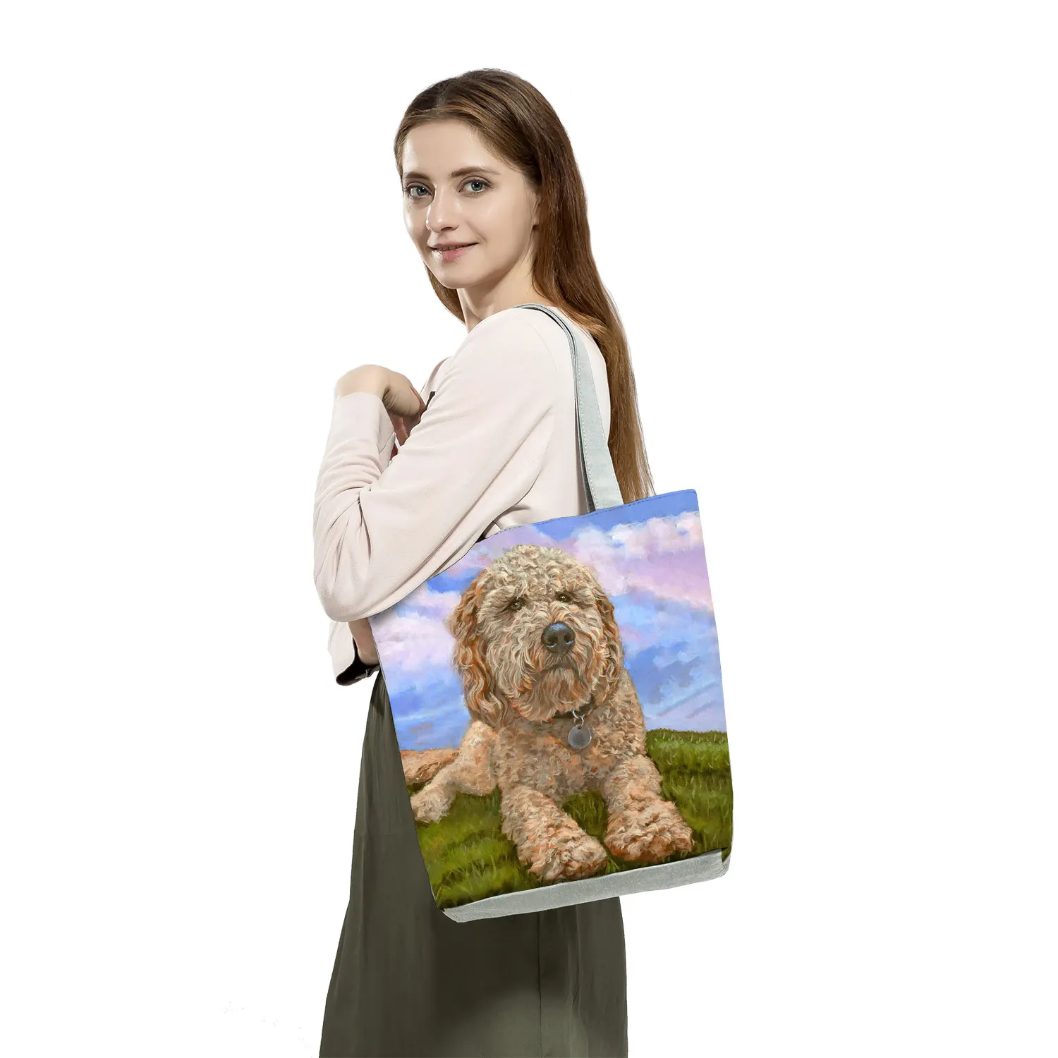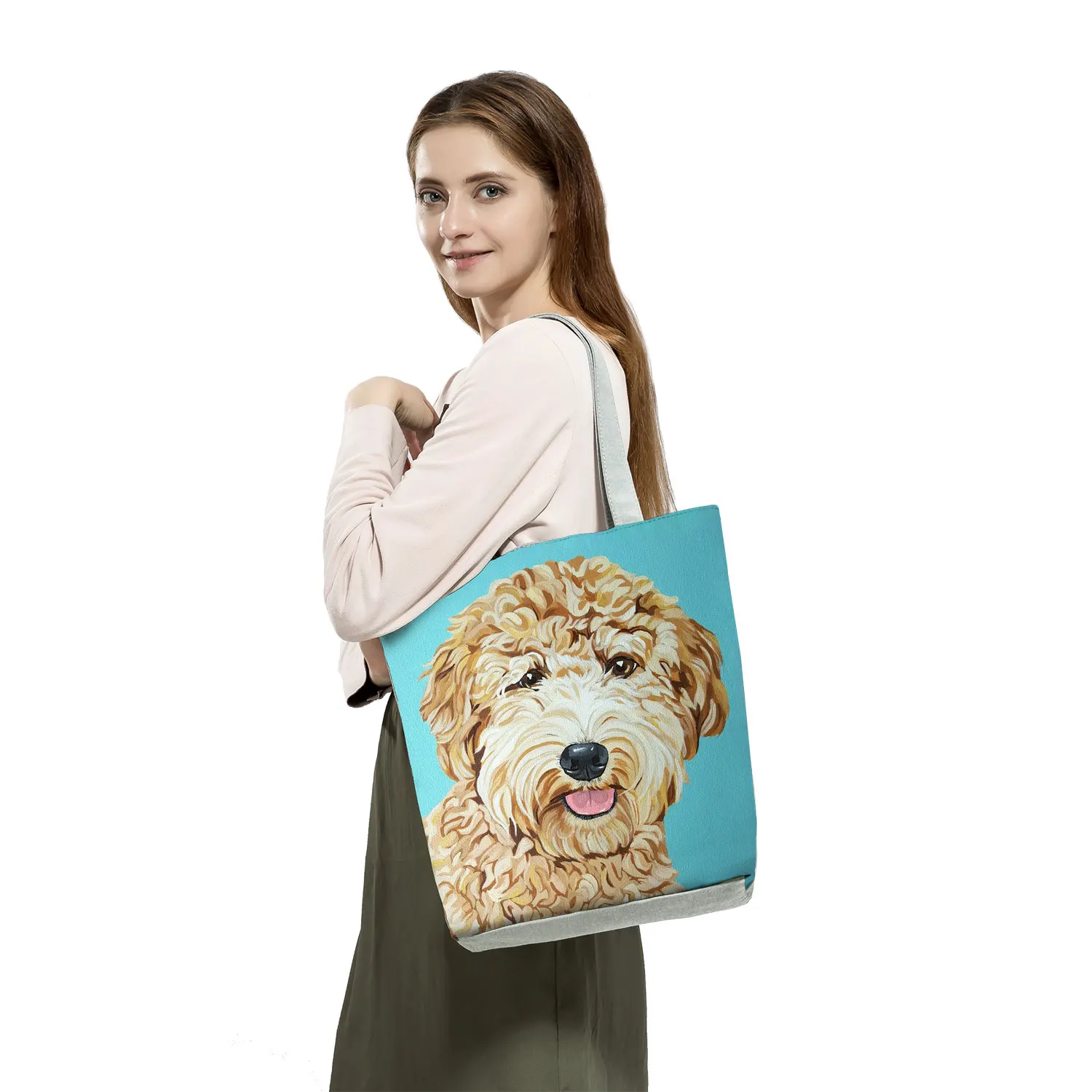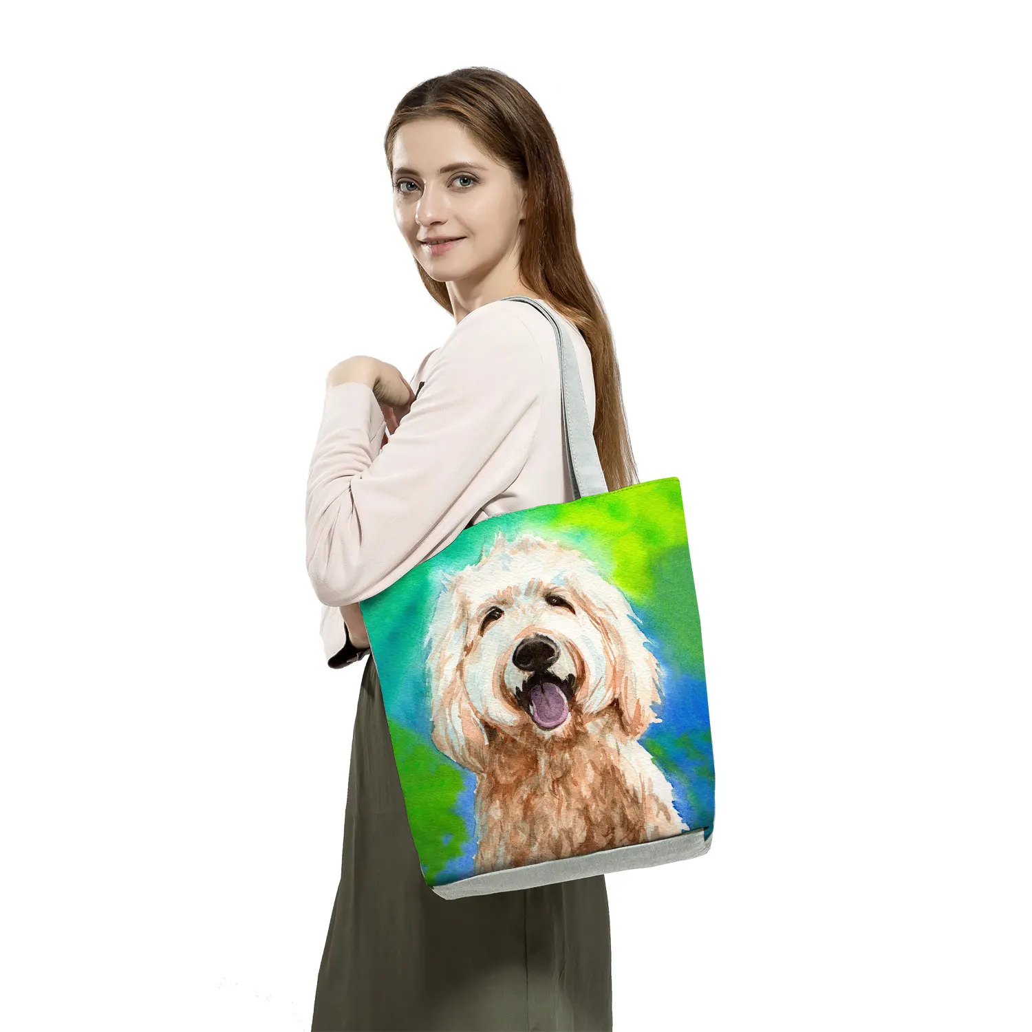 Cute Golden Doodle Shopping Bags, Foldable Groceries Women Handbags Animal Dog Keeper The Tote Bag Large Capacity Shoulder Bags