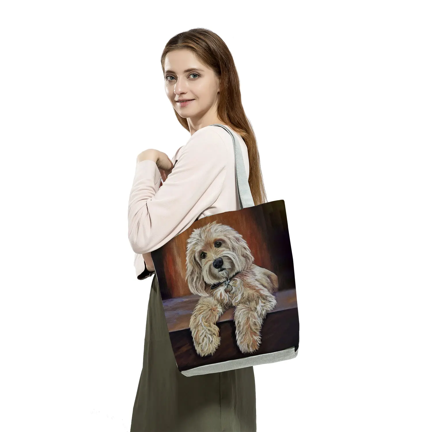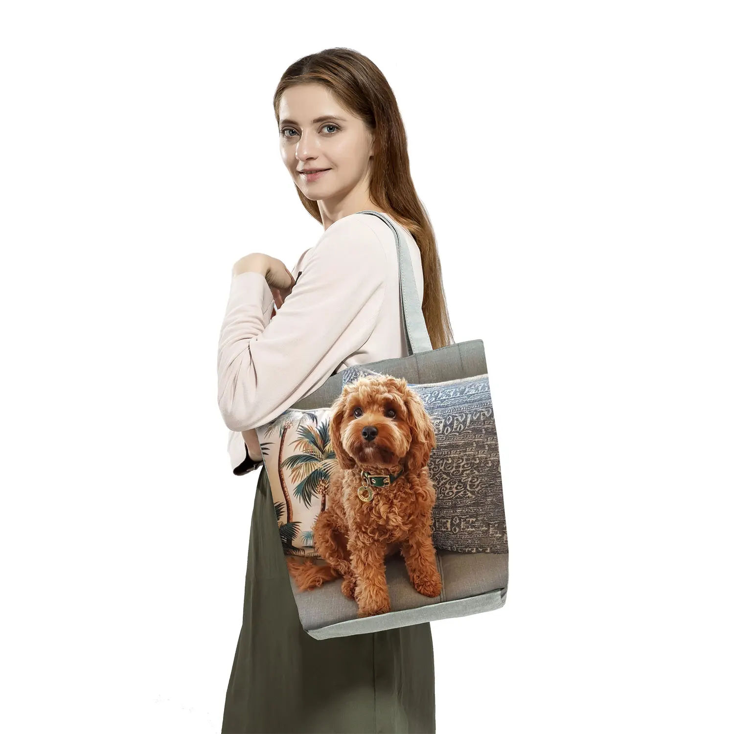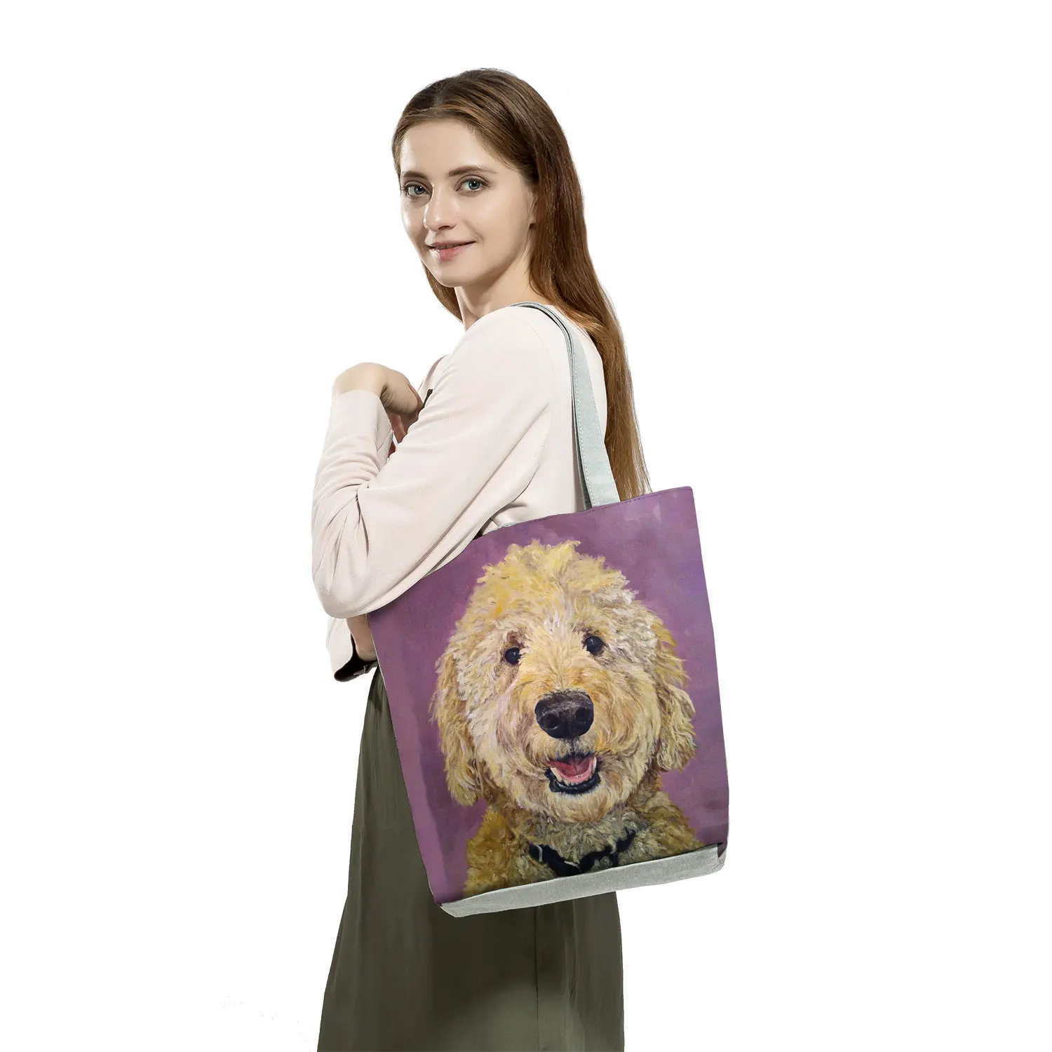 Cute Golden Doodle Shopping Bags, Foldable Groceries Women Handbags Animal Dog Keeper The Tote Bag Large Capacity Shoulder Bags